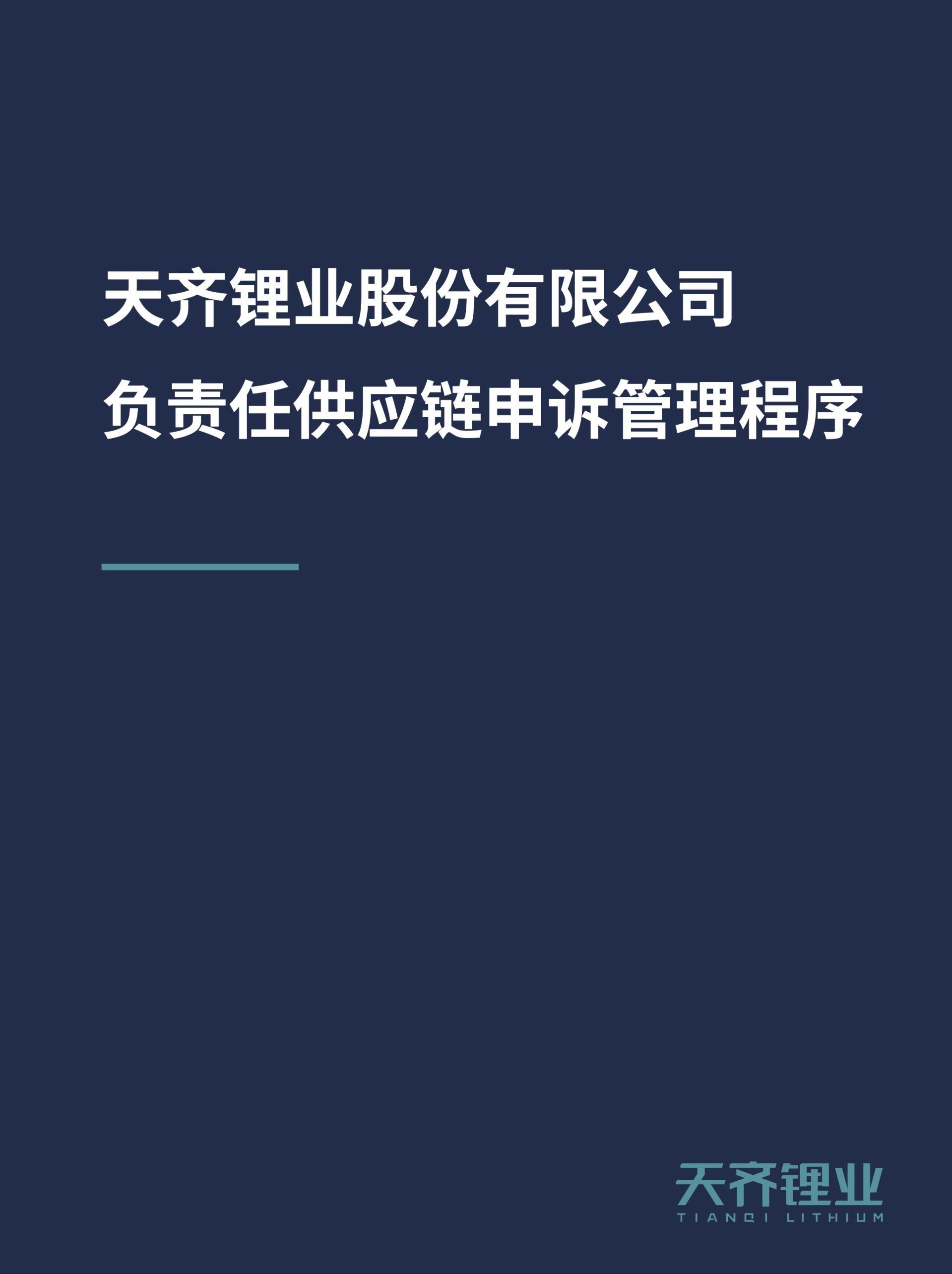天齐锂业负责任供应链申诉管理程序