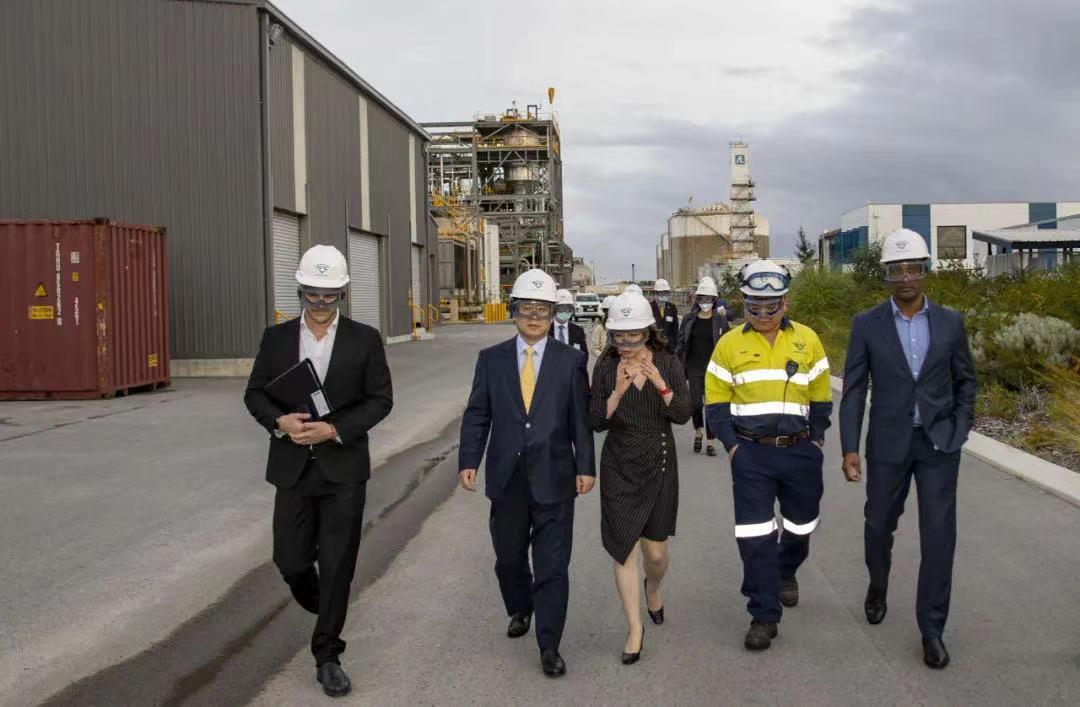 6月11日,中国驻澳大利亚大使肖千在珀斯走访考察了天齐锂业奎纳纳氢氧化锂工厂。