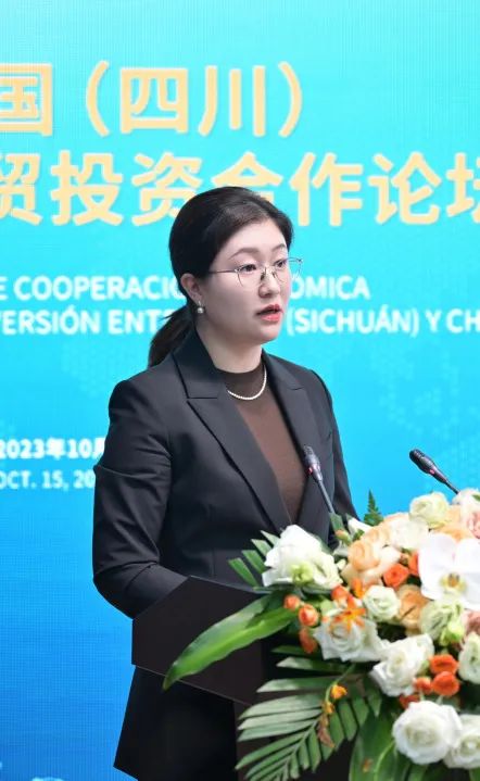 随后,智利外交部国际经济关系副部长克劳迪娅·萨纽埃萨致辞并表示,智利是一个高度关注人性化、公正、可持续和包容的国家,并与中国(四川)具有深厚的合作基础,欢迎有更多中国(四川)的企业来智发展。
