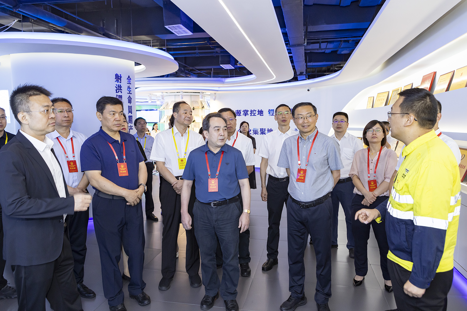 在天齐射洪的锂电产业展厅,张鸣副书记、罗强副书记一行了调研了公司发展历程、锂资源分布、锂电上下游协同产业链、技术研发与未来发展方向等基本情况,并详细听取了企业在经营发展过程中存在的意见与建议。