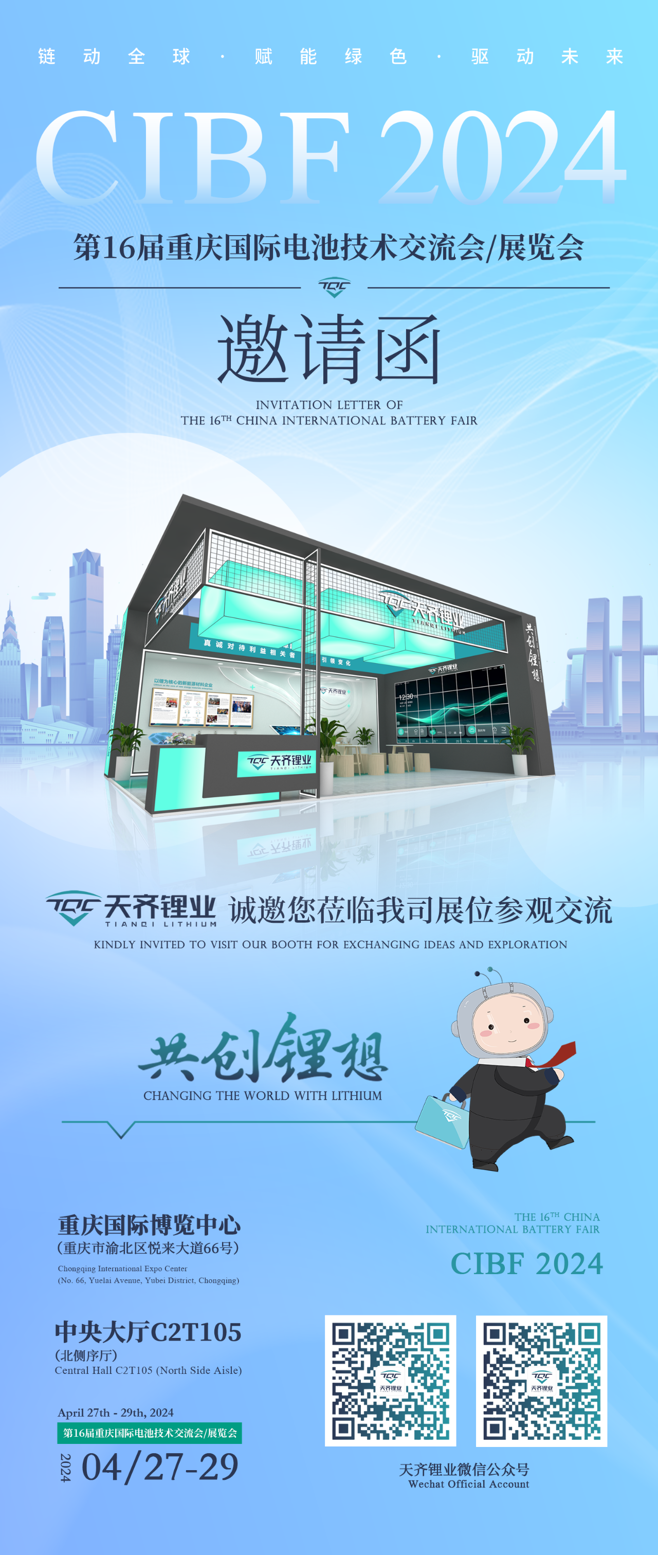 展会邀请 | 天齐锂业与您相约CIBF2024重庆国际电池技术交流会/展览会