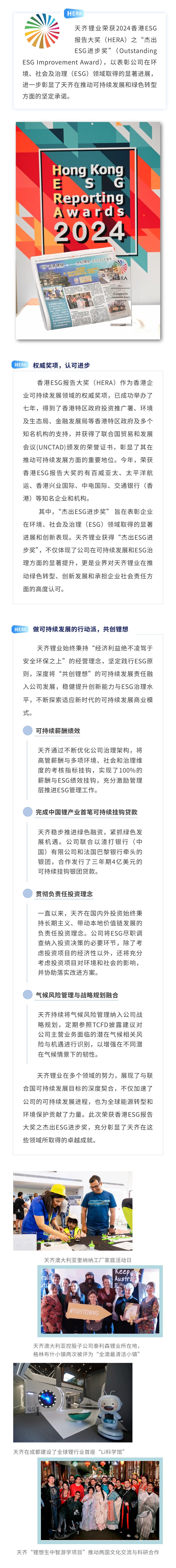 天齐锂业荣获香港ESG报告大奖(HERA)“杰出ESG进步奖”