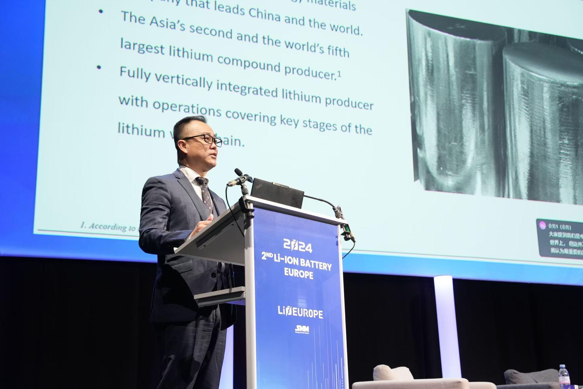 天齐锂业首次亮相欧洲锂电池峰会,总裁夏浚诚先生发表主题演讲