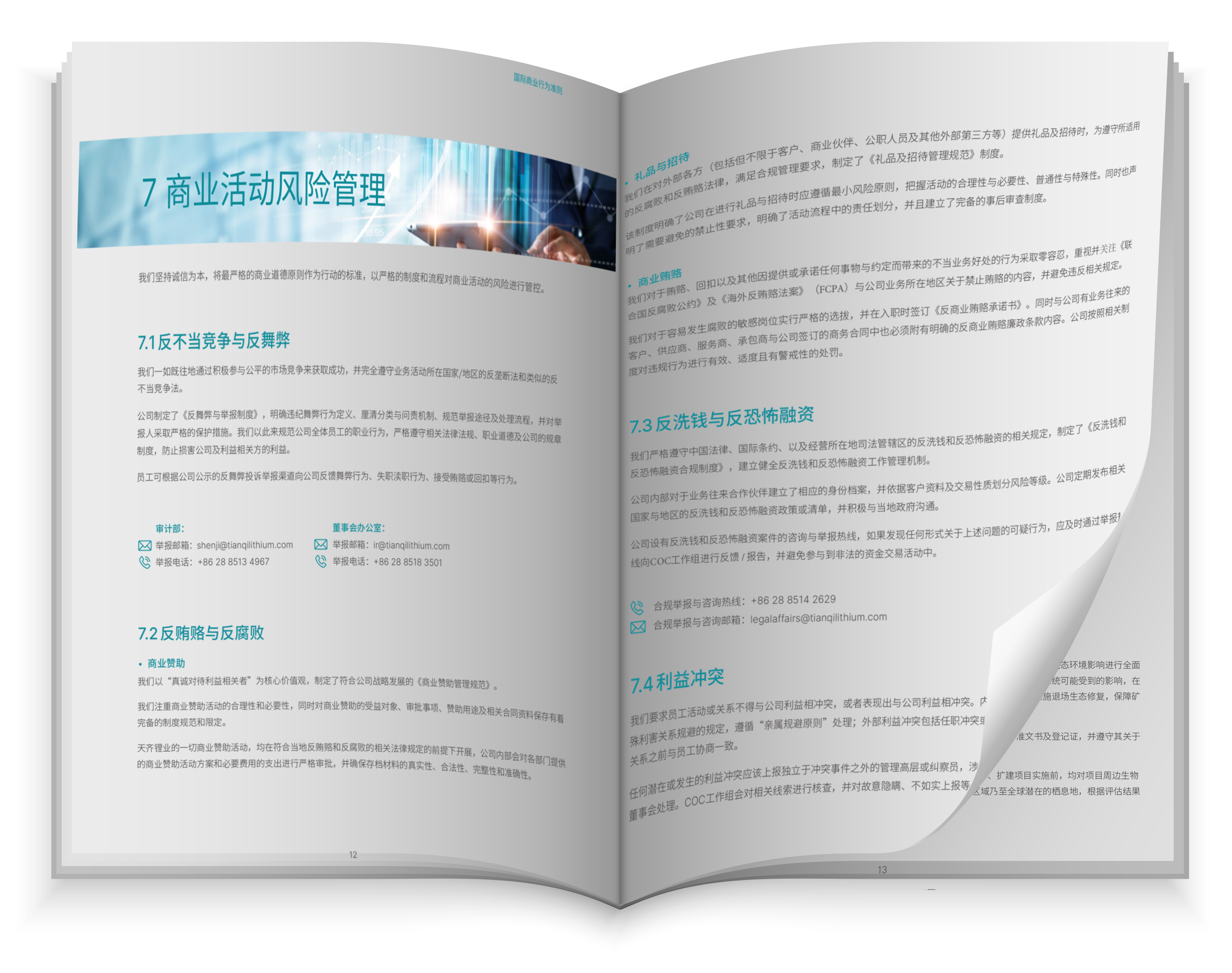 天齐锂业一直秉承着“求真务实”的核心价值观,不断深化廉洁文化体系建设。我们坚信,一个阳光、诚信、透明的组织机构是企业可持续发展的基石,也是维护良好营商环境的关键。我们期待所有员工、合作伙伴以及社会各界的支持和参与,共同推动天齐锂业的廉洁文化建设,携手共创更加美好的未来。