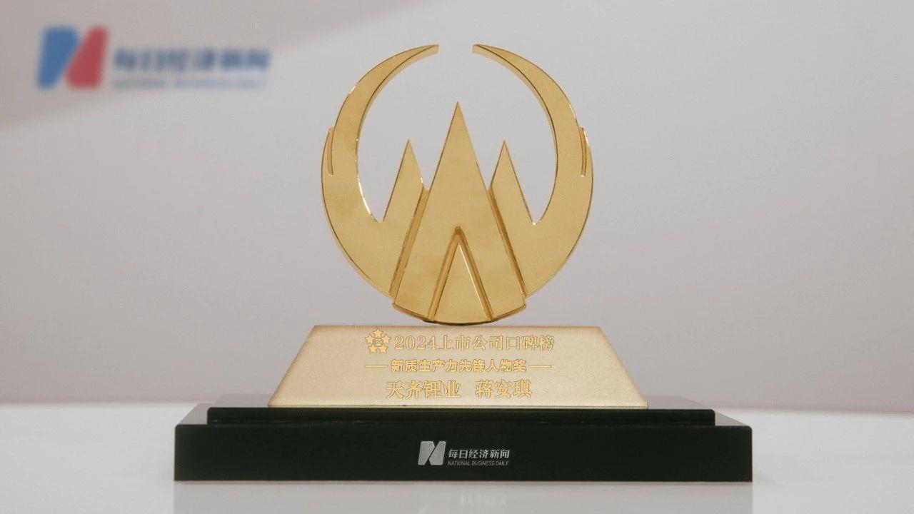 12月6日,由成都传媒集团旗下权威财经媒体——《每日经济新闻》发起的“2024第十四届中国上市公司口碑榜”获奖名单正式揭晓。天齐锂业董事长蒋安琪女士以其卓越的领导力和在推动企业创新驱动、绿色发展战略中的成功实践,荣获2024年度“新质生产力先锋人物奖”。