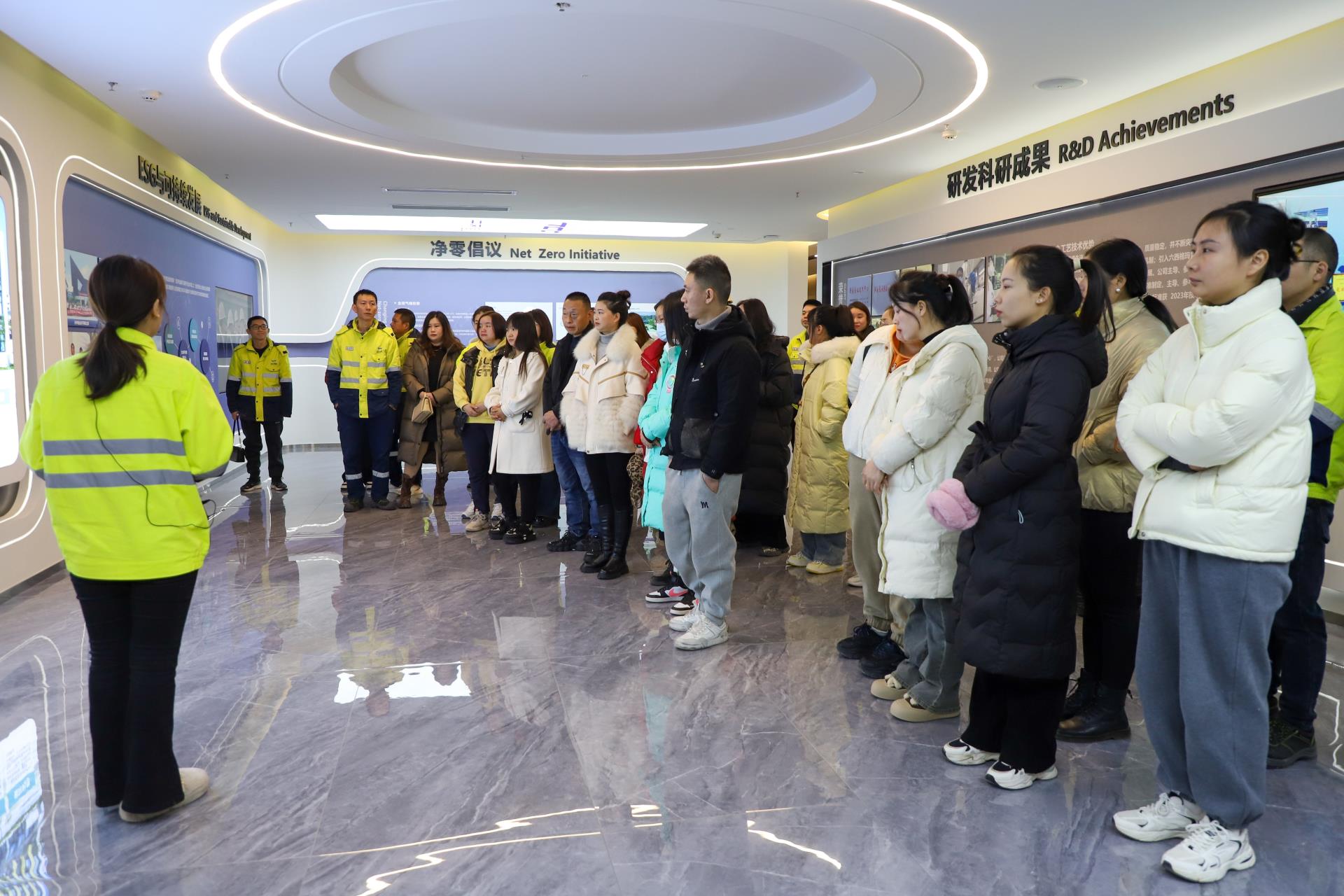 在工作人员的热情接待下,家属们先后参观了基地的展厅、办公区、DCS中控室和生产区。他们不仅沉浸式了解了公司的发展历程,还在穿戴好个人防护装备(PPE)后深入生产一线,近距离感受了安居基地的高自动化生产线、精湛的工艺流程、严格的排放控制措施以及高效的管理体系,对公司的自动化水平及可持续发展理念有了更直观的认识。