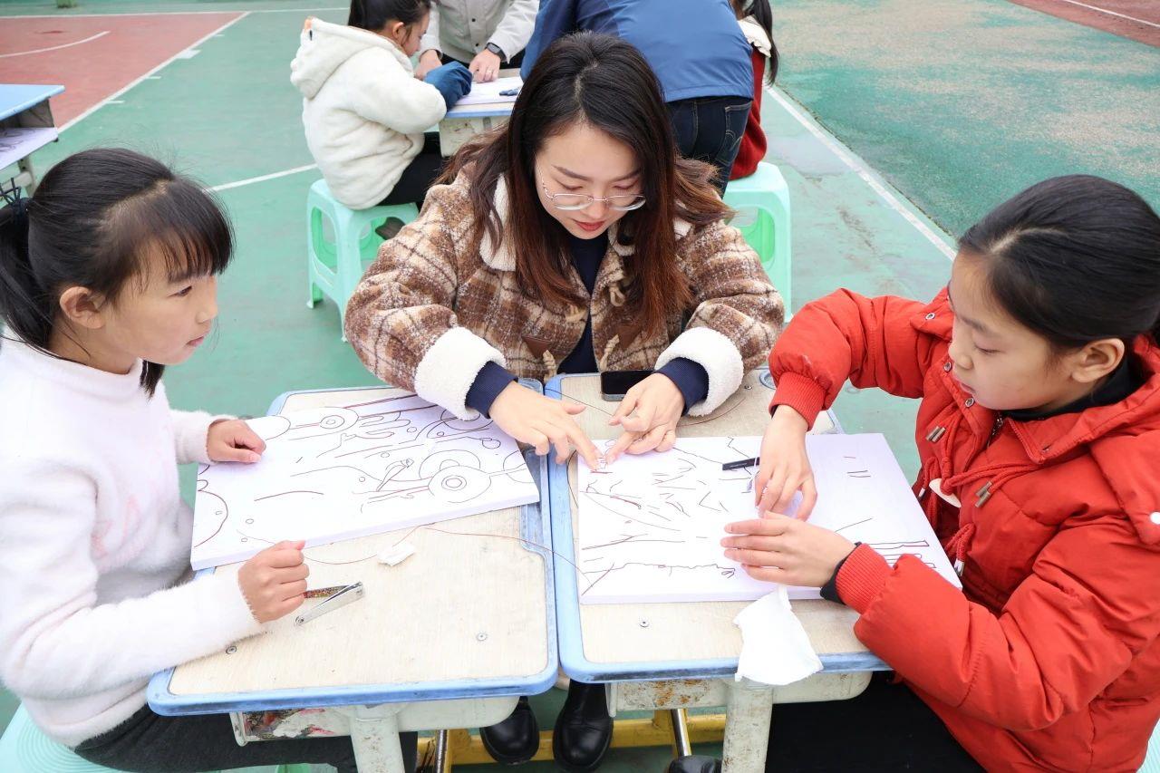 志愿者们参观了小林小学铜丝画展厅,并与同学们共同创作铜丝画,体验传统手工艺的魅力。