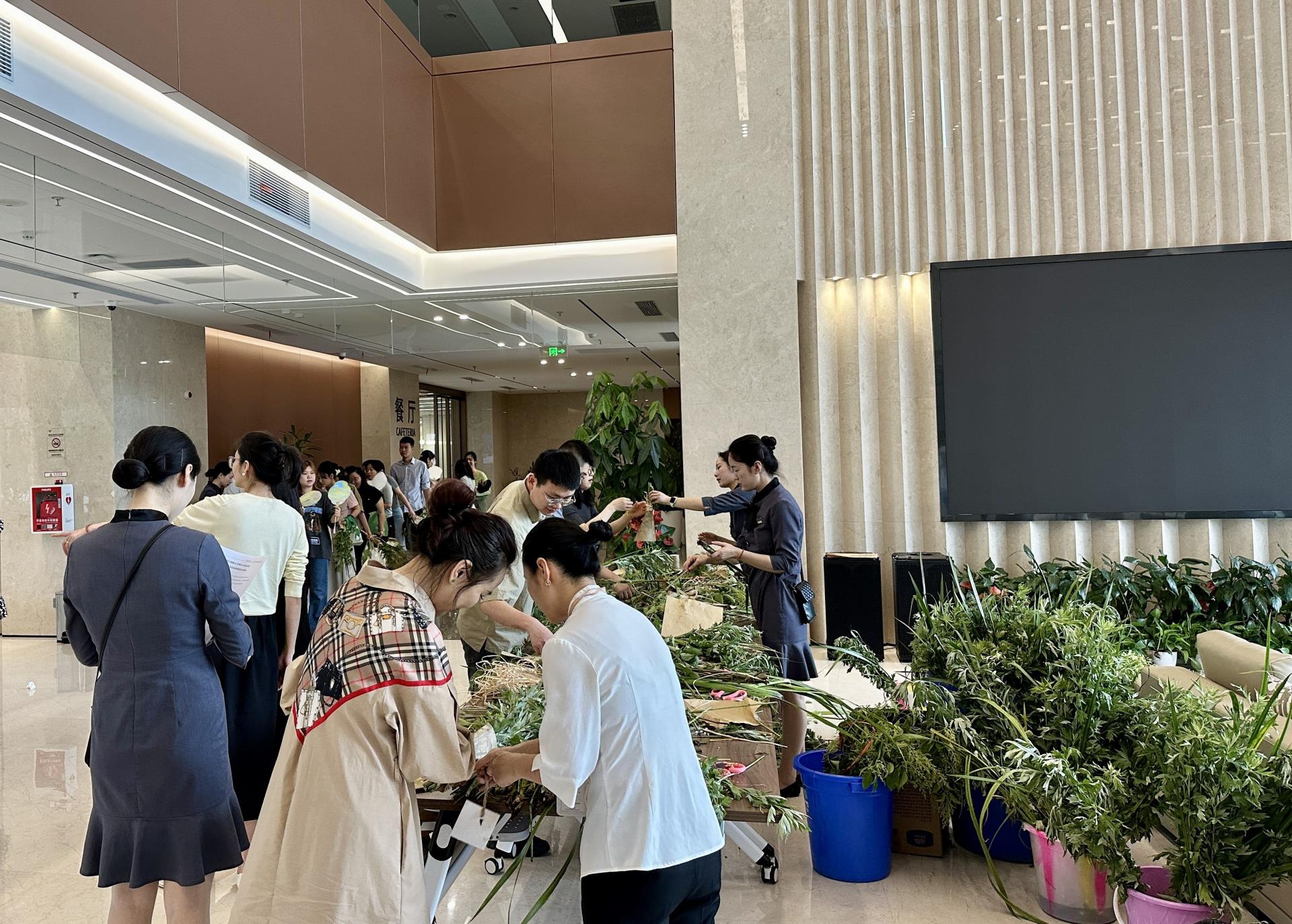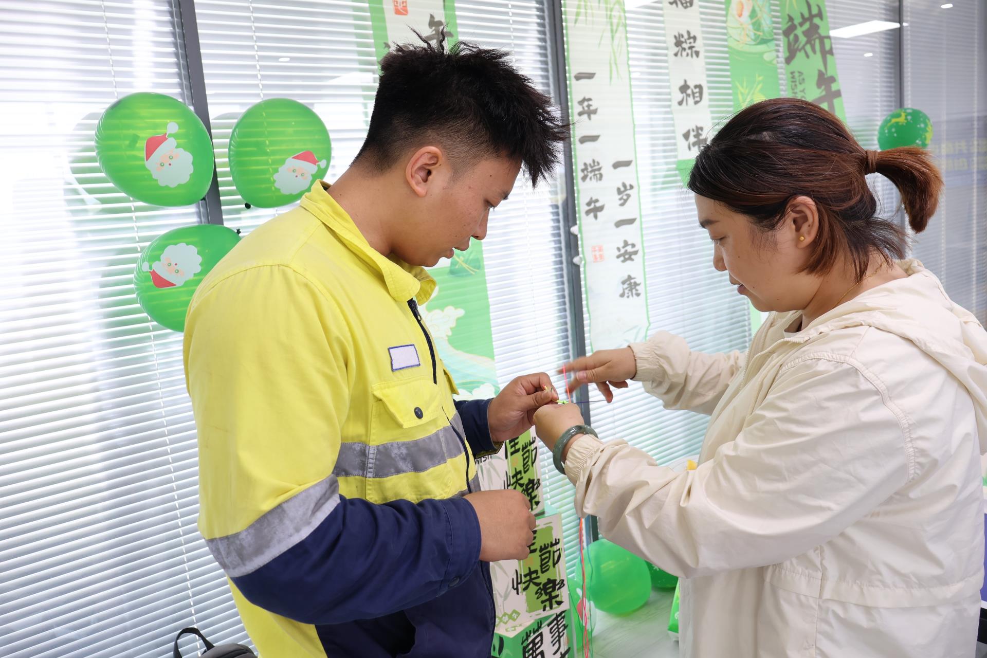 在重庆基地,“粽情端午,欢乐生辰”HAPPY HOUR主题活动热闹开展。活动现场,翠绿的粽叶装饰和五彩斑斓的香囊挂件随处可见,处处洋溢着节日的喜庆氛围。在温馨的编五彩绳活动和扇子DIY大赛中,青(绿)、红、黄、白、黑五种颜色的绳子在员工们手中穿梭,搭配上珠子、小粽子挂件,一条条承载着祈福安康寓意的五彩绳逐渐成型,风格各异的扇子作品相继诞生。大家在欢声笑语中感受着传统手工艺的独特魅力。
