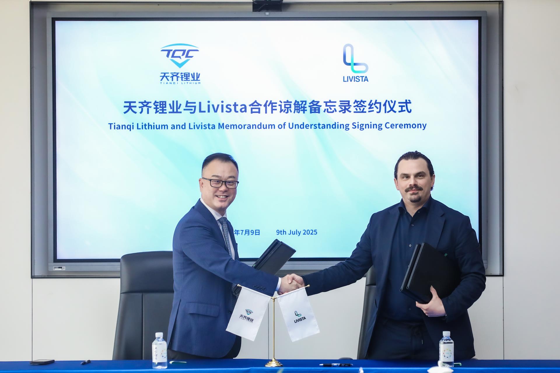 2025年7月9日,天齐锂业股份有限公司(以下简称“天齐锂业”)与Livista Energy Europe S.A.(以下简称“Livista”)公司在天齐锂业成都总部签署合作谅解备忘录。天齐锂业董事、总裁夏浚诚先生与Livista创始人兼董事长Roland Getreide先生共同出席签约仪式。