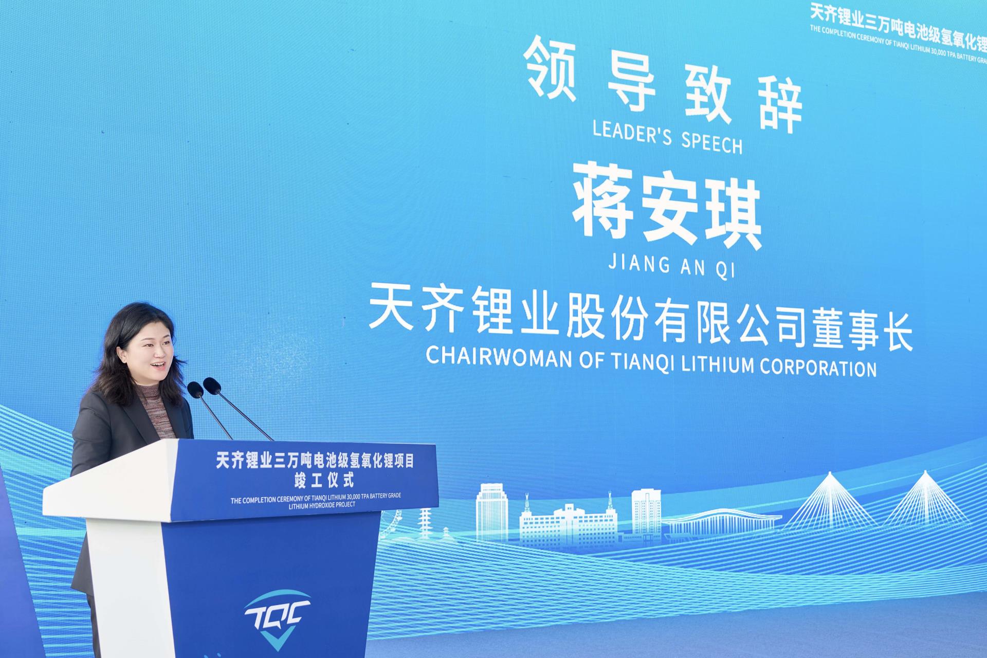 ▲天齐锂业董事长蒋安琪致辞