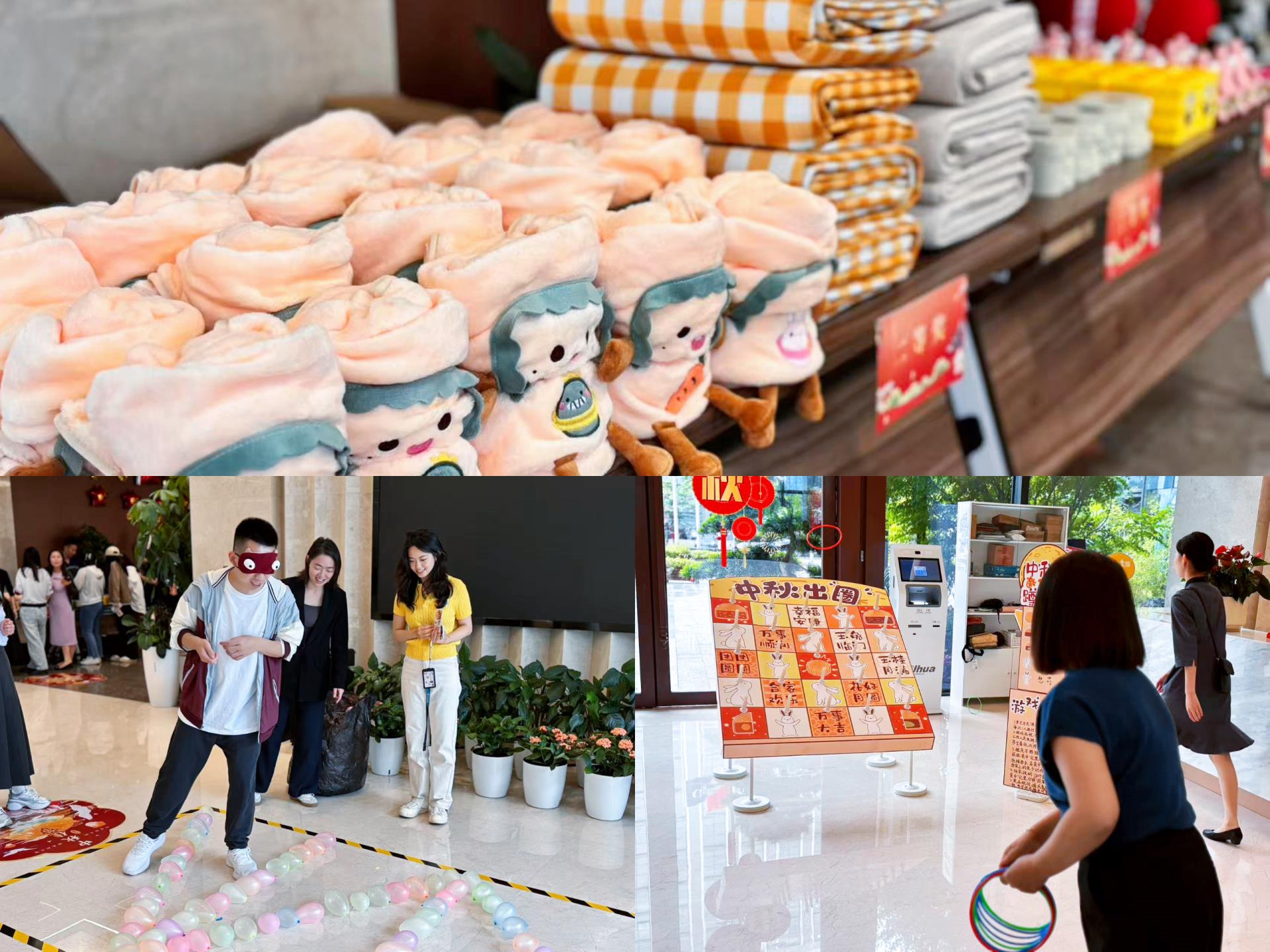 张家港基地将中秋民俗与员工生日会相结合举办主题活动。活动以“欢乐月饼蹲”趣味互动开场,五仁、蛋黄等月饼口味化身为玩家身份,配合头饰造型与口号,迅速点燃现场气氛;“中秋百问”环节聚焦传统文化内涵,围绕成语诗词展开抢答,员工们踊跃参与,在智慧的碰撞中深化了对传统节日的认同。