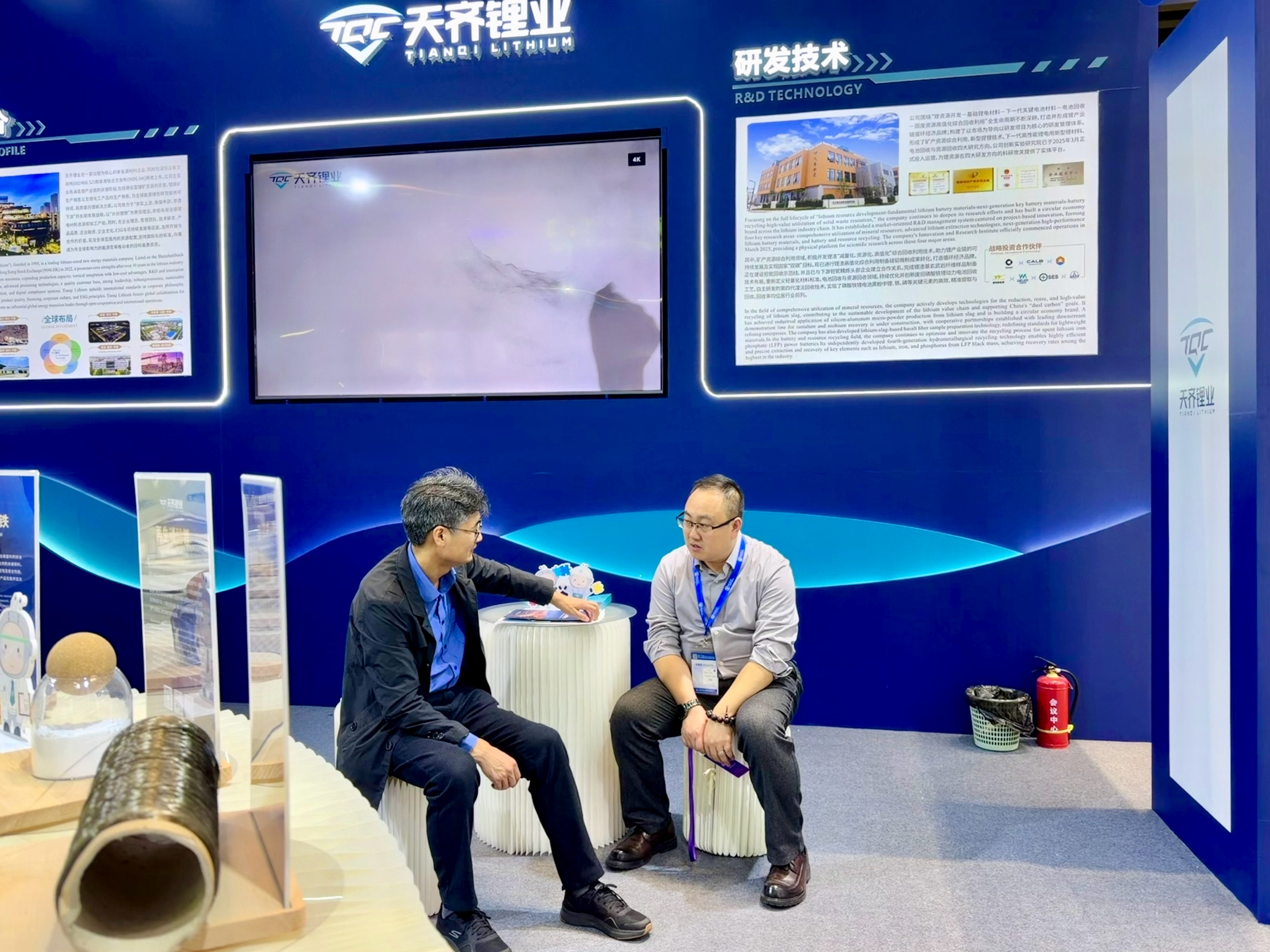 在天齐锂业展台,再生磷酸锂、再生磷酸亚铁、钽铌精矿和锂渣基玄武岩纤维集中陈列,直观展示了“资源-产品-再生”的全生命周期循环闭环。这些再生产品依托锂渣“减量化、资源化、高值化”的核心技术,构建了“再生材料+固废资源化+低碳产品”的完整可持续产品体系。整个展台不仅聚焦再生金属领域的技术突破与产业化能力,更将公司可持续发展理念深度融入每一件展品与每一次技术解读之中。