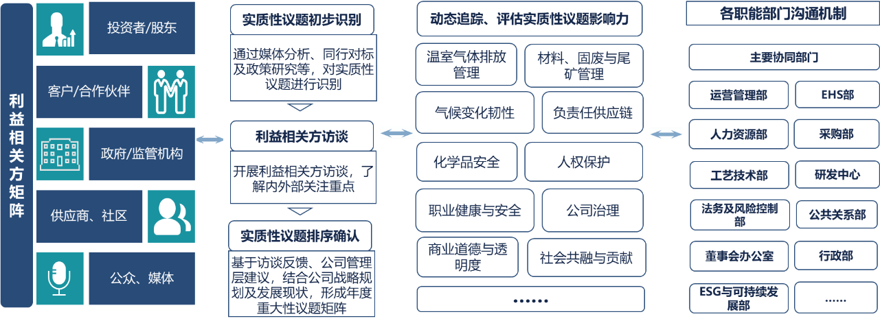 天齐锂业通过“相关方权利-利益模型”与各利益相关方形成了长期沟通机制,及时了解并回应各利益相关方的期望及诉求,与各利益相关方共同发展。我们识别出主要利益相关方,根据利益相关方的不同类型,了解并分析其重点关注的议题,并采用不同的方式有针对性地回应利益相关方的关切。